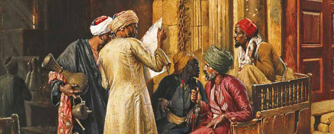 Ludwig Deutsch – A Gathering around the Morning News, Cairo
